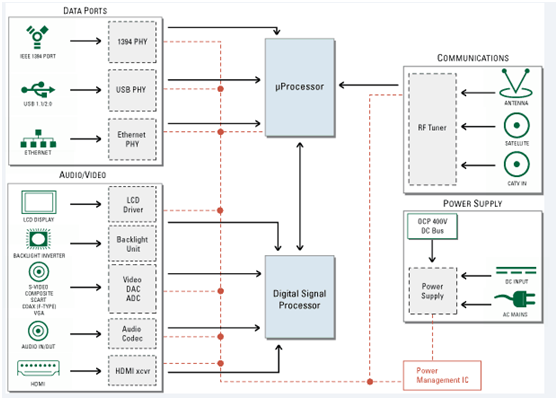 其中IEE1394有用到必威betway网址1812係列33V1.1A貼片自恢複保險絲,在直流輸入端還有運用到P4KE400W軸向引線型瞬態電壓抑製器,HDMI端口有用到SP3010用於ESD保護的超低電容二極管陣列等等。