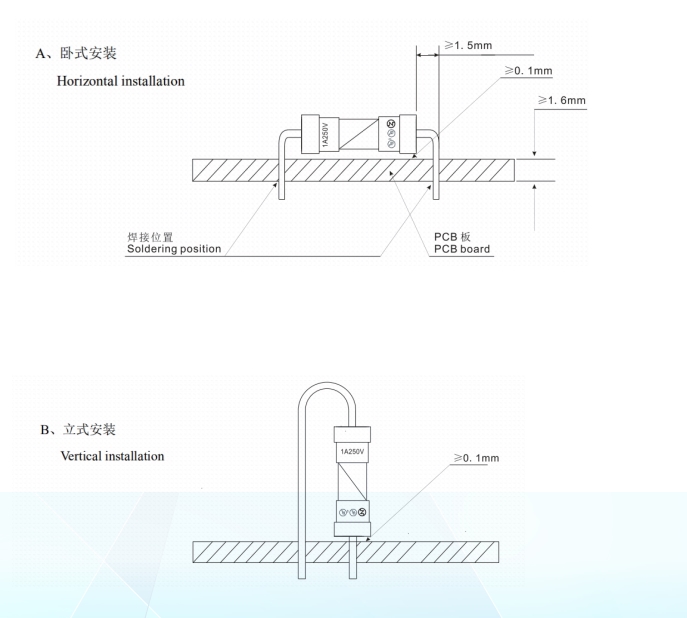 6.3A快斷陶瓷管保險絲的材質主要由:陶瓷管構成的主體,鍍錫銅線構成的引線,銅鍍鎳做成的銅帽,保險絲內部的熔絲為合金線。必威betway网址6.3A快斷陶瓷管保險絲的正常工作溫度範圍為:-55℃~+125℃。6.3A快斷陶瓷管保險絲的焊接方式有兩種,一種是波峰焊,錫爐建議溫度不能大於260℃,焊接時間2~5秒,而另外一種是收工焊,烙鐵溫度在350℃±5℃,焊接時間不能大於5秒。