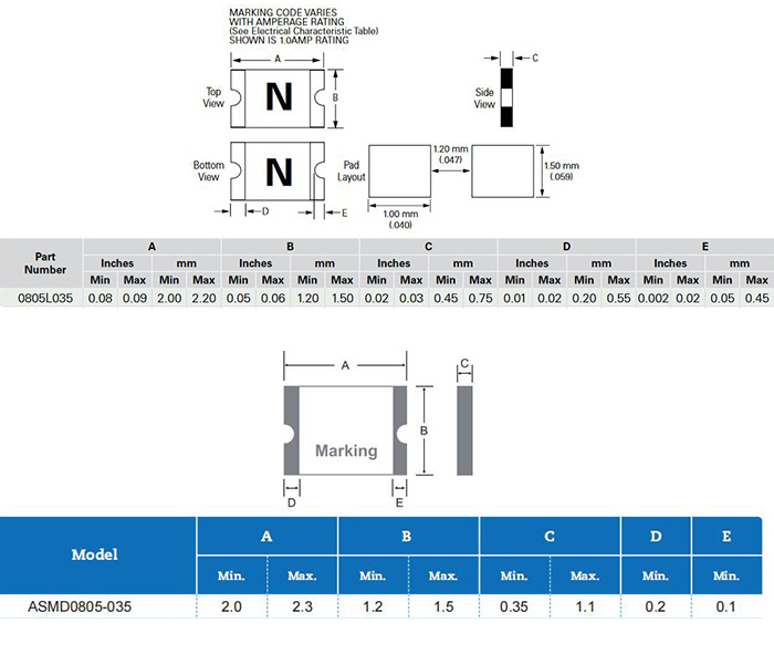 深圳必威betway网址成熟的產品線貼片自恢複保險絲ASMD0805-035可替換Littelfuse力特品牌的0805L035,從電氣參數和指標對比: