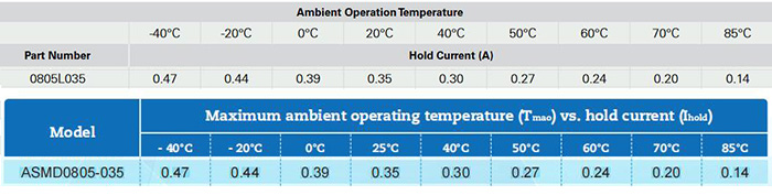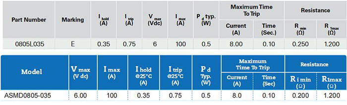 由以上數據可看出ASMD0805-035與0805L035參數完全匹配,可以直接替換。