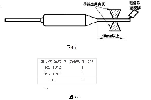 1.焊接點和溫度保險絲引腳的距離保持至少10mm(如圖4)